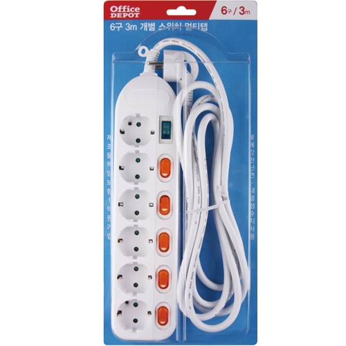 ⓢ6구3M 개별스위치 멀티탭(오피스디포)